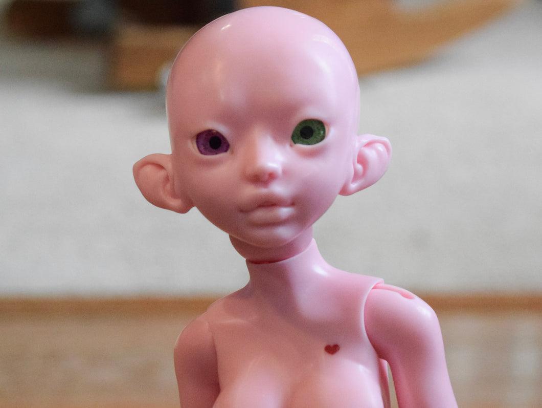This doll is cast in resin, which includes the mixing of color compounds into resins. This being said, slight marbling and some very little bubbles can occur, which are normal and natural to resin casting, however I do try my best to give you the best quality cast. Another thing that occurs with resin casting is the presence of seam lines. Meaning there will be seam lines present with this preorder due to the fact that I am using a caster instead of casting myself.