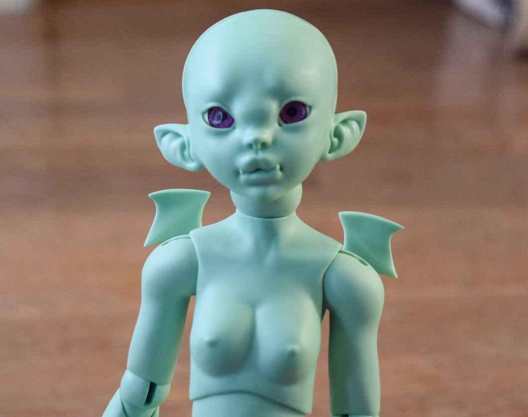 This doll is cast in resin, which includes the mixing of color compounds into resins. This being said, slight marbling and some very little bubbles can occur, which are normal and natural to resin casting, however I do try my best to give you the best quality cast. Another thing that occurs with resin casting is the presence of seam lines. Meaning there will be seam lines present with this preorder due to the fact that I am using a caster instead of casting myself.